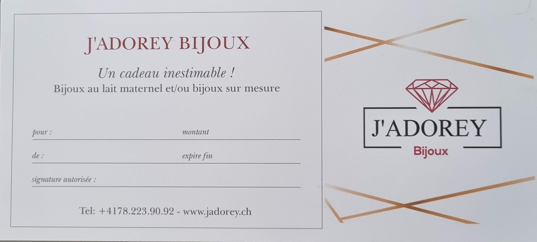 Contactez-moi au +41 78 223 90 92 ou par mail au Jadorey.bijoux@gmail.com