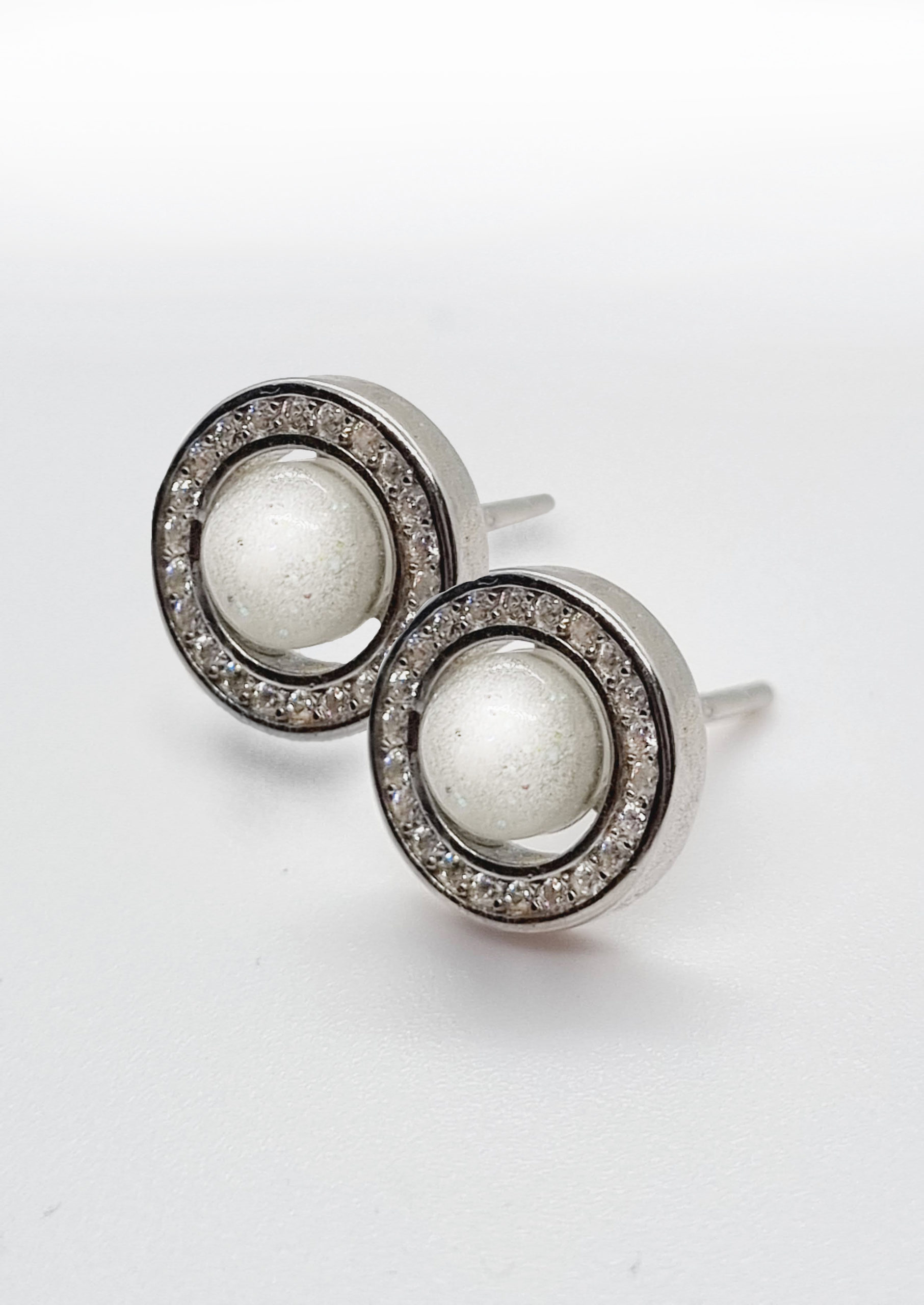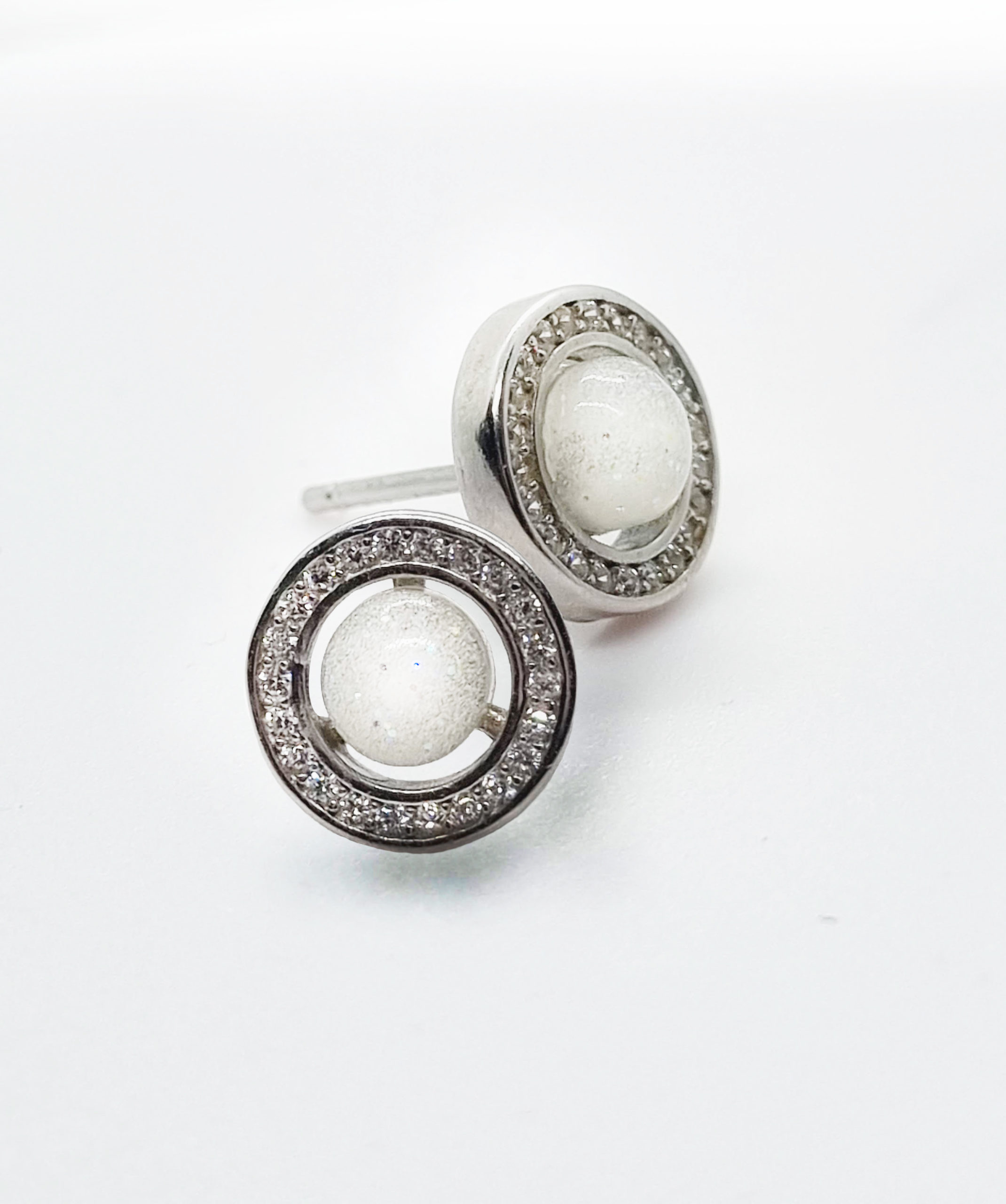 Boucles d’oreilles en argent 925, serti de zircon et cabochon de lait maternel
