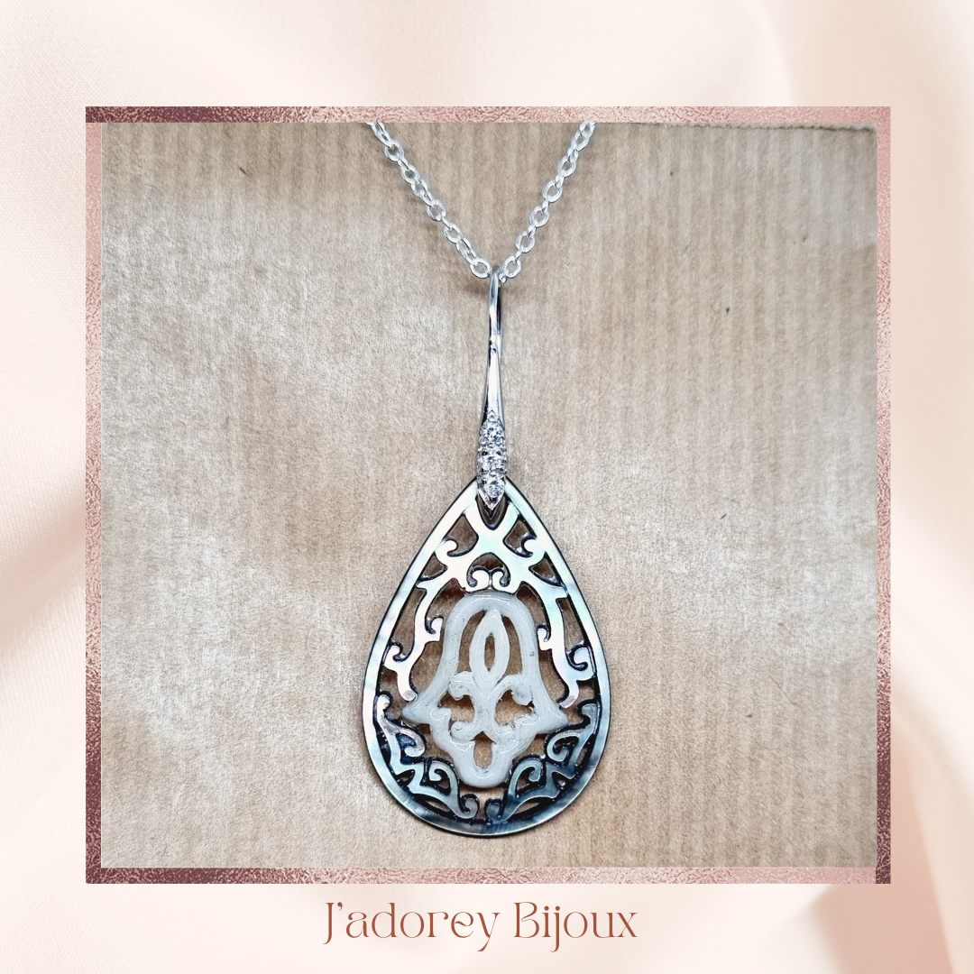 Nacre ajourée de mes mains rendant cette pièce unique en son genre.